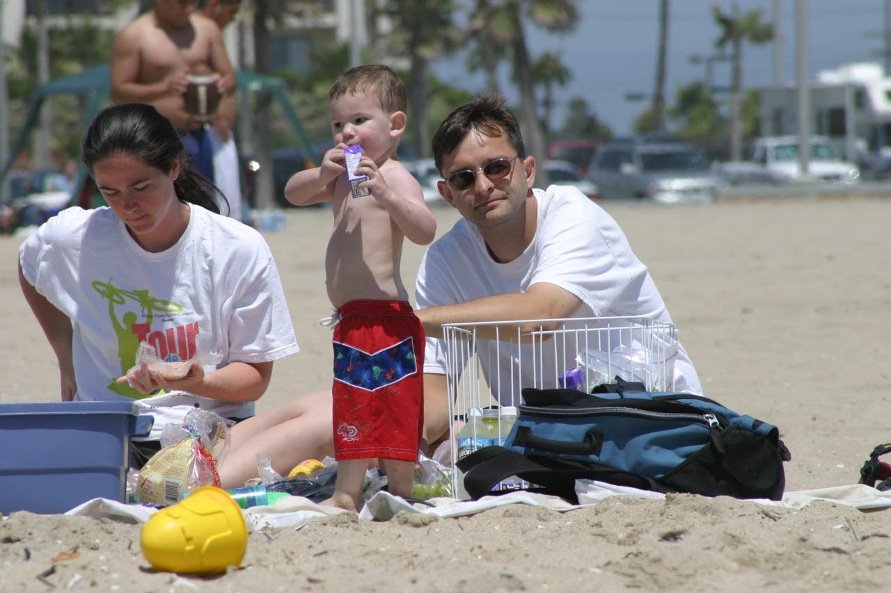 View: MedRes / HiRes | Mark, Sue, and Cooper picnic at the beach