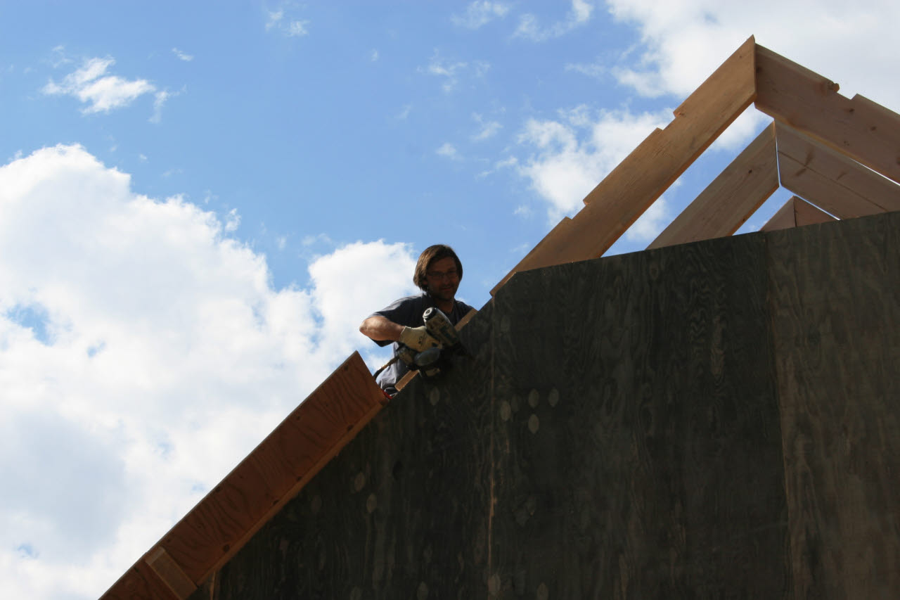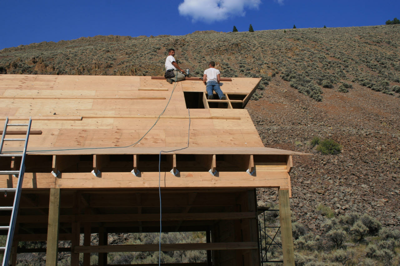 View: MedRes / HiRes | This is as far as we got with constructions before we headed out Hopefully J.B., Ken, and Ray can get finish up the siding and seal 'er up before they have to hit the road.