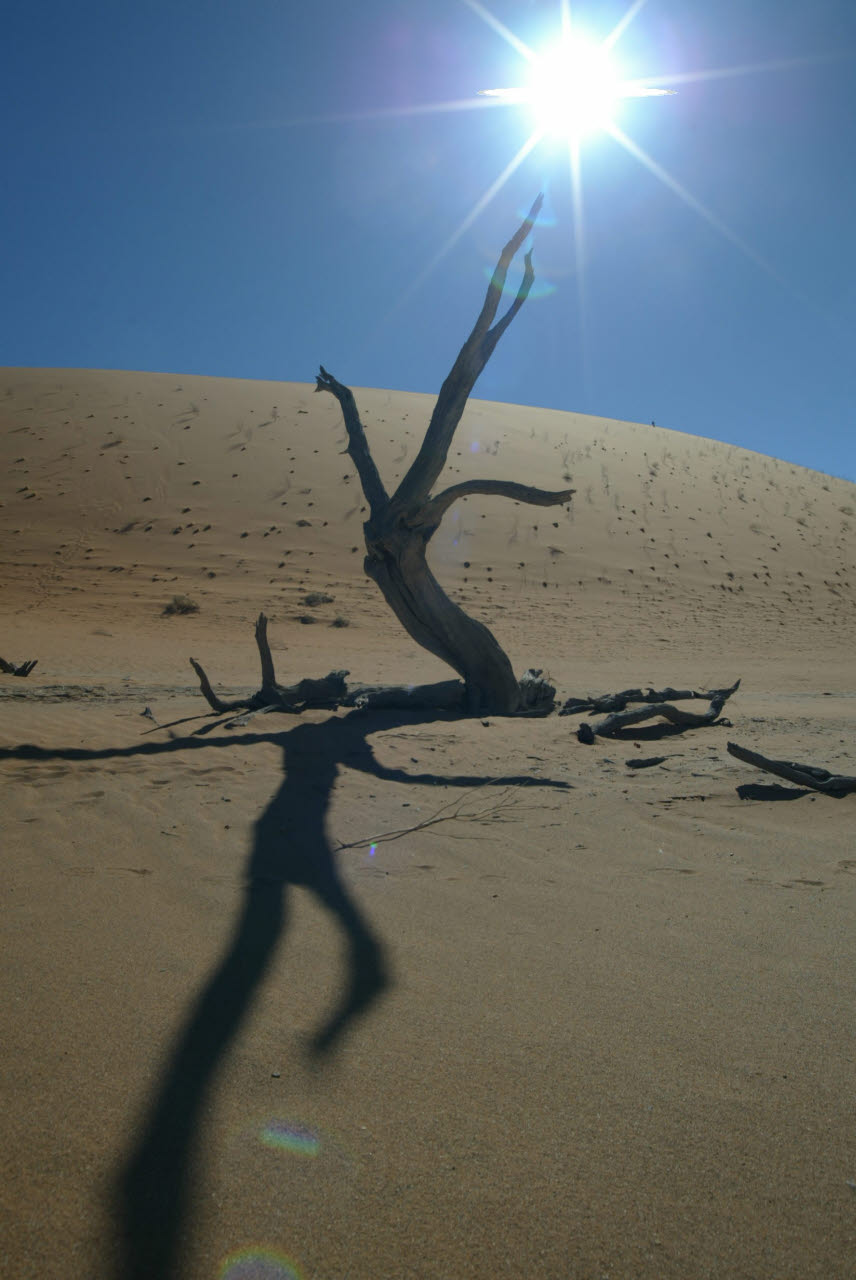 View: MedRes / HiRes | Dune, Sun, and a Tree near Deadvlei The vlei is slowly being taken over by the sand dunes.