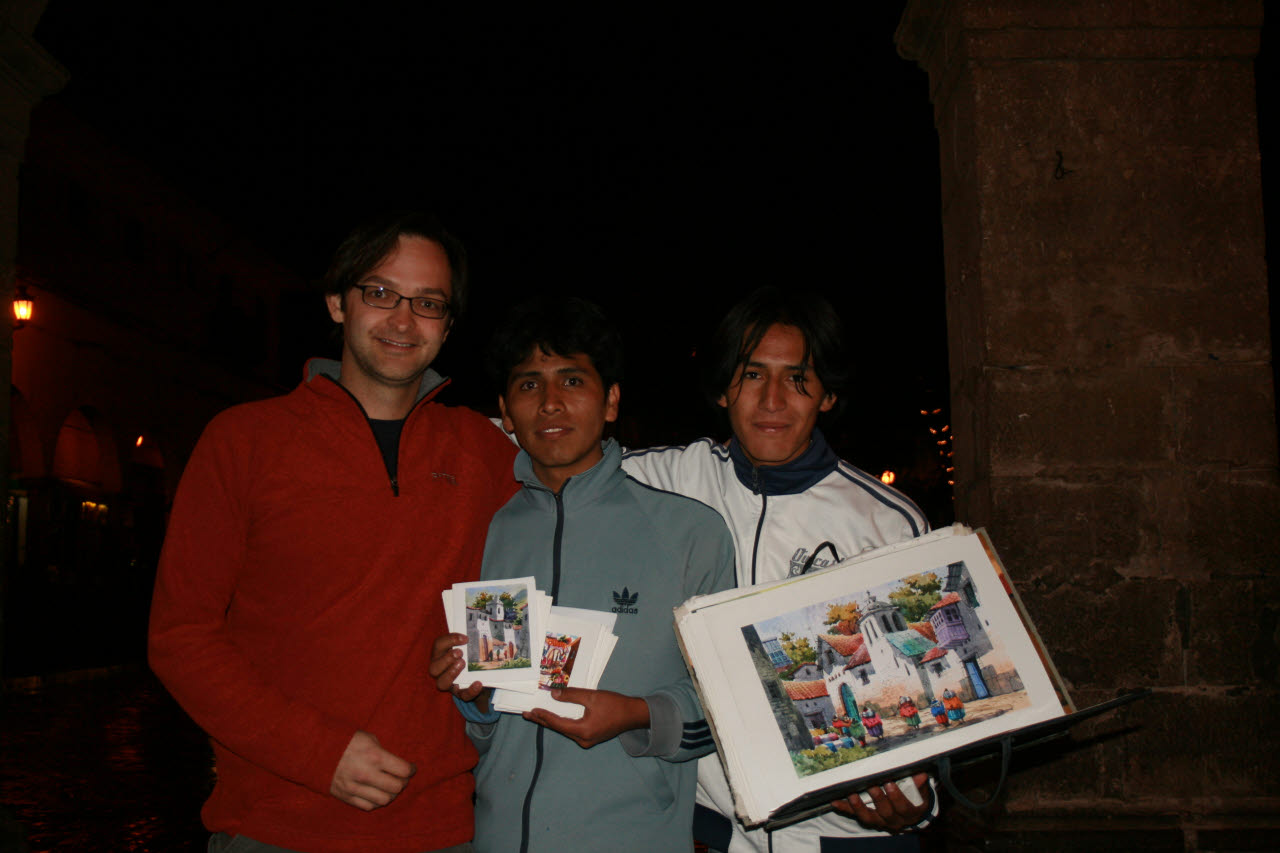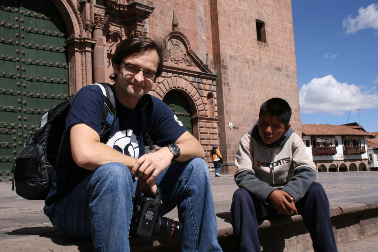 Mark makes friends in the Plaza de Armas, Cuzco, Peru