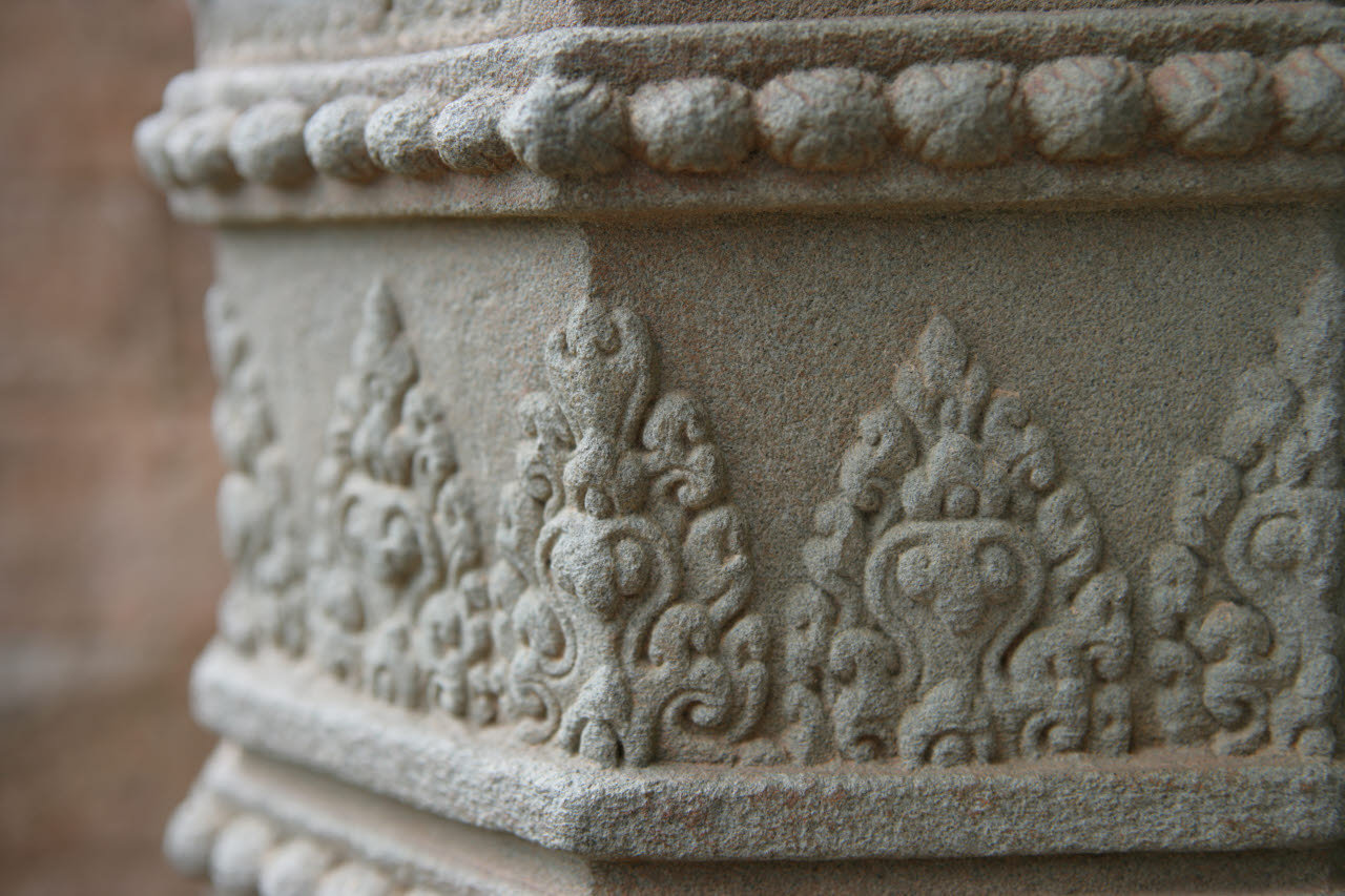 View: MedRes / HiRes | Details of Prasat Kravan Temple, Angkor, Cambodia Prasat Kravan is a temple dedicated to Hindu god Vishnu, built in the early 10th century. Prasat Kravan means cardamom sanctuary.
