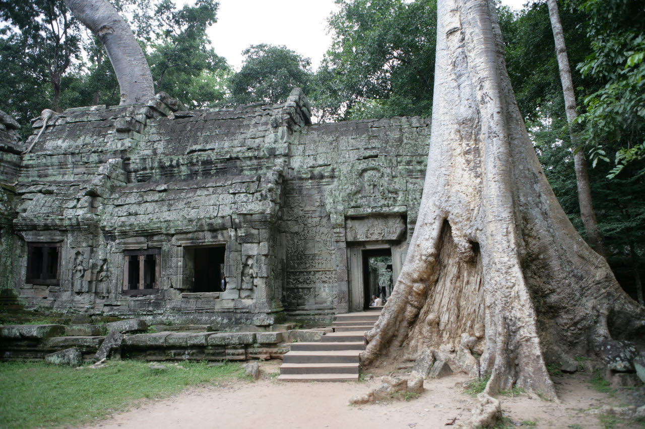 Ta Prohm, aka Tombraider, is famous for the trees that have grown through the temple and now hold up much of the structure. Ta Prohm means Ancestor of Brahma. Ta Prohm is a highlight for many Angkor complex visitors.