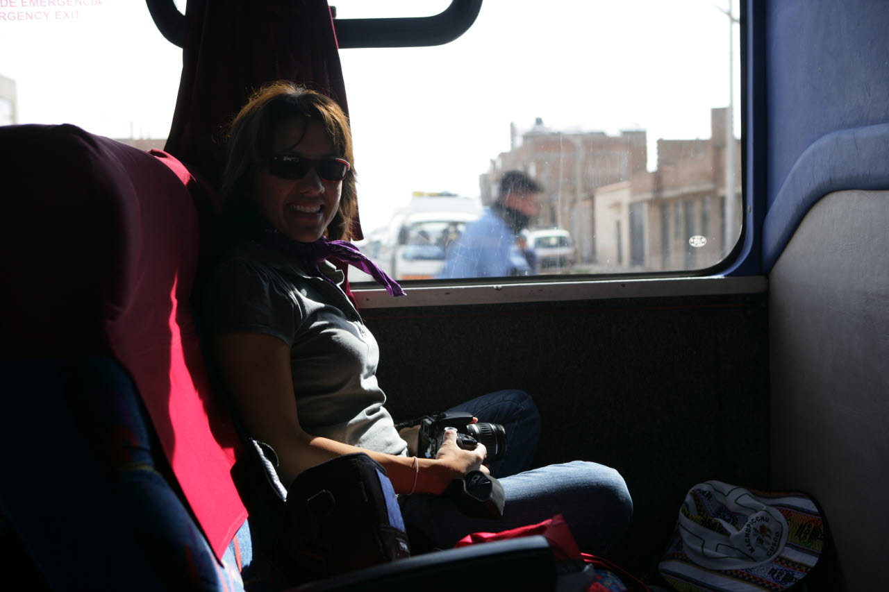 View: MedRes / HiRes | Amynah on the bus between Puno and Arequipa