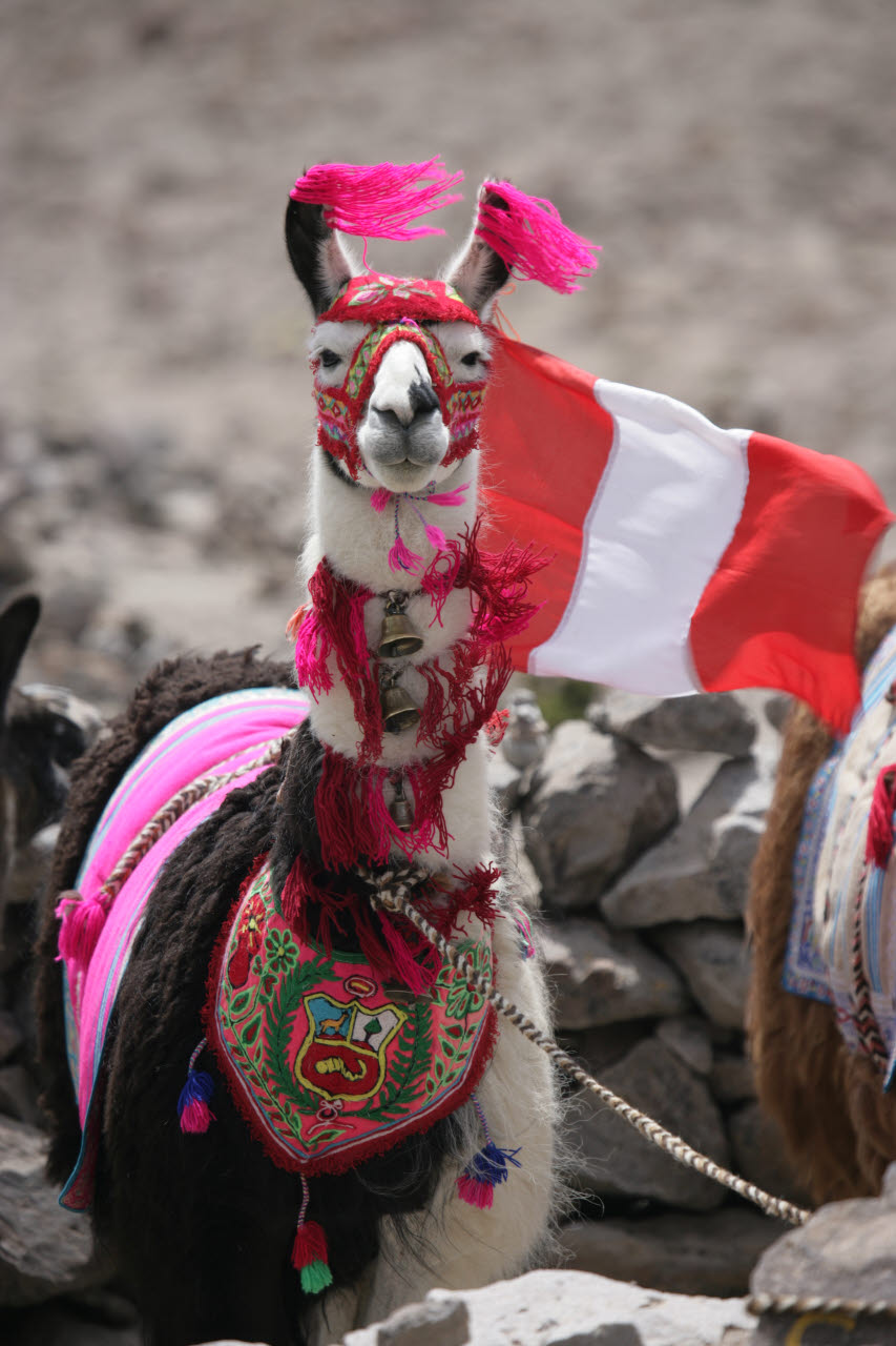 View: MedRes / HiRes | Costumed Alpaca at the Colca Canyon Pass (4910m)
