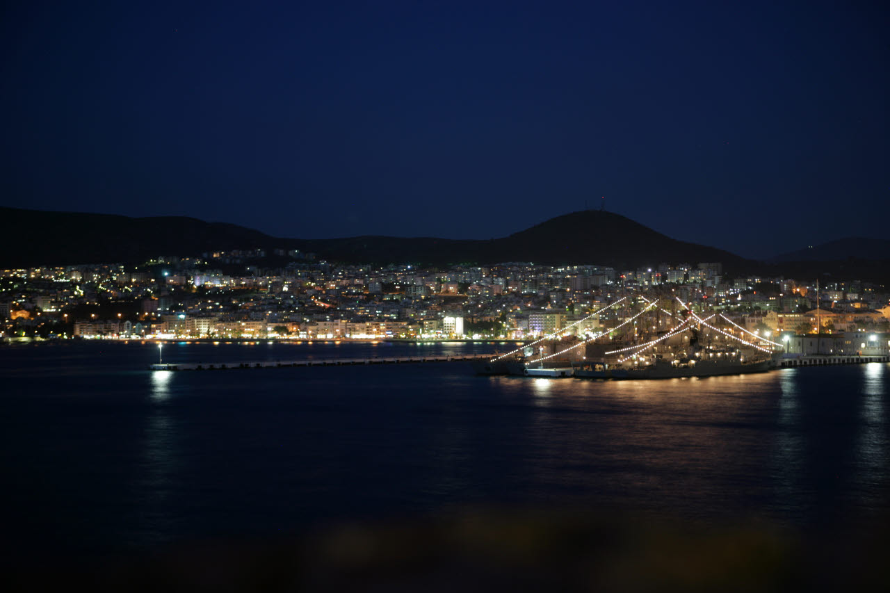 View: MedRes / HiRes | Kusadasi, Turkey at night w/Naval Ships