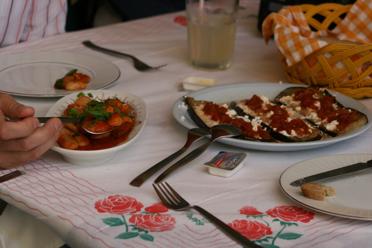 View: MedRes / HiRes | Giant Beans and Grilled Eggplant in Rhodes, Greece
