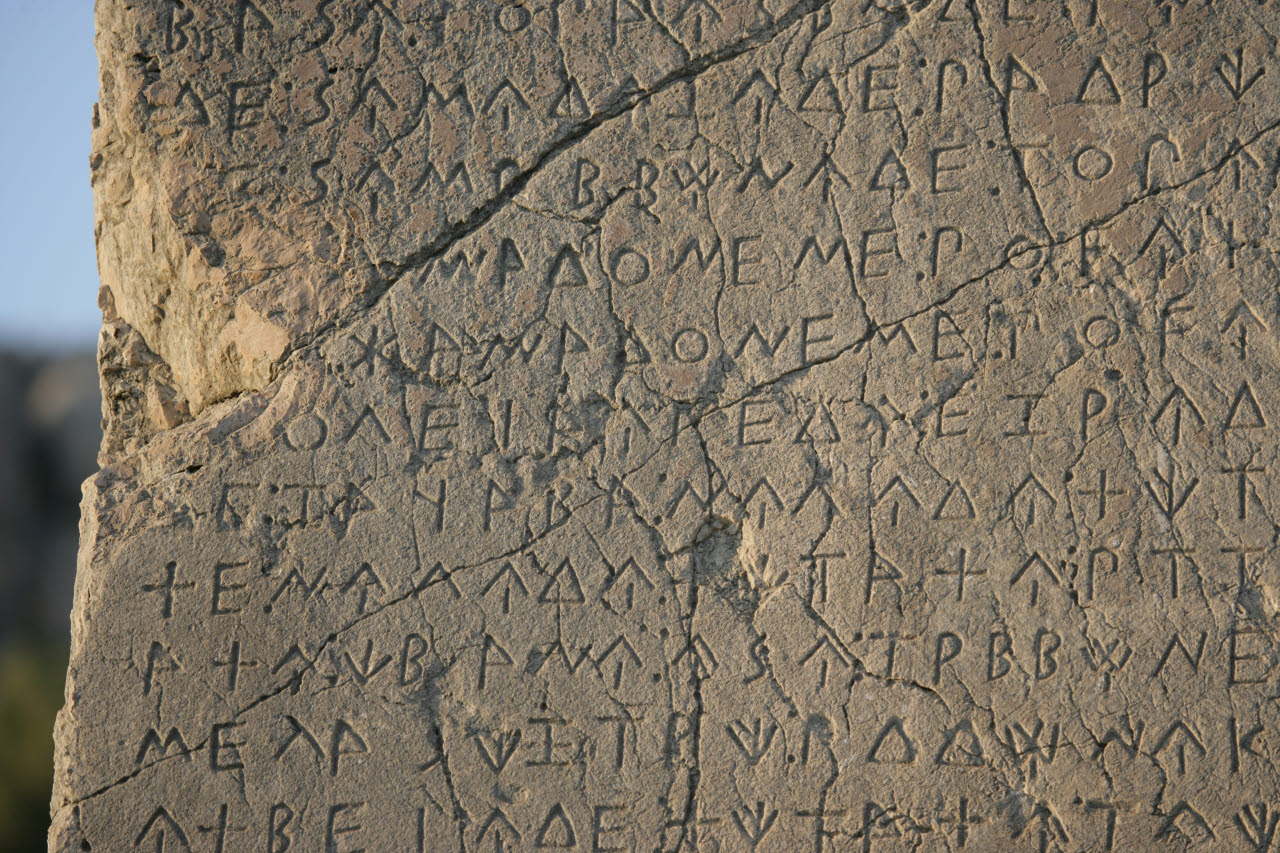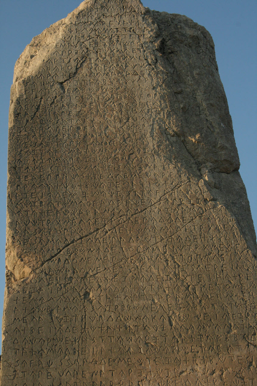 View: MedRes / HiRes | Pillar in ancient Lycian city of Xanthos This bilingual (Lycian/Greek) helped researcher decipher the Lycian language.