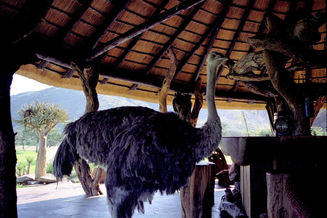 View: MedRes / HiRes | Ostrich wandering through Okapuka Ranch Lodge