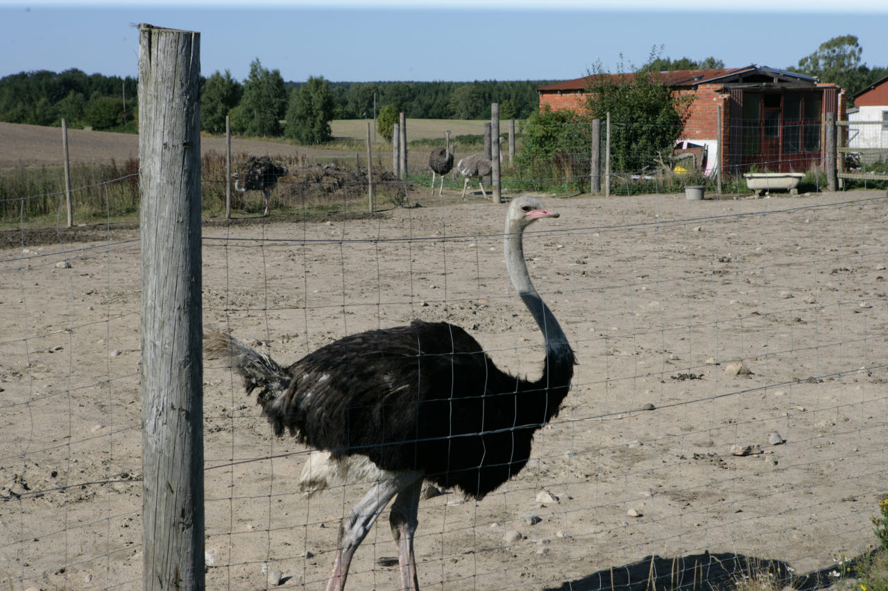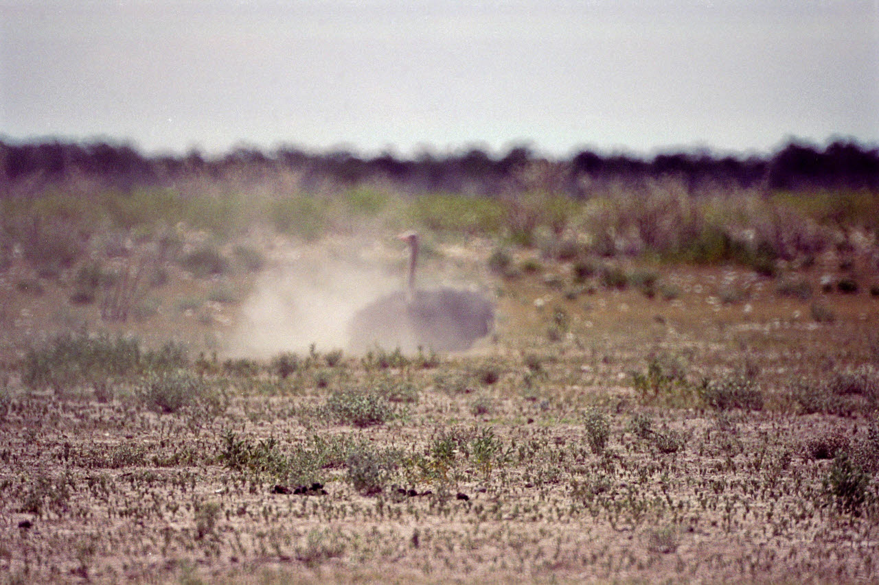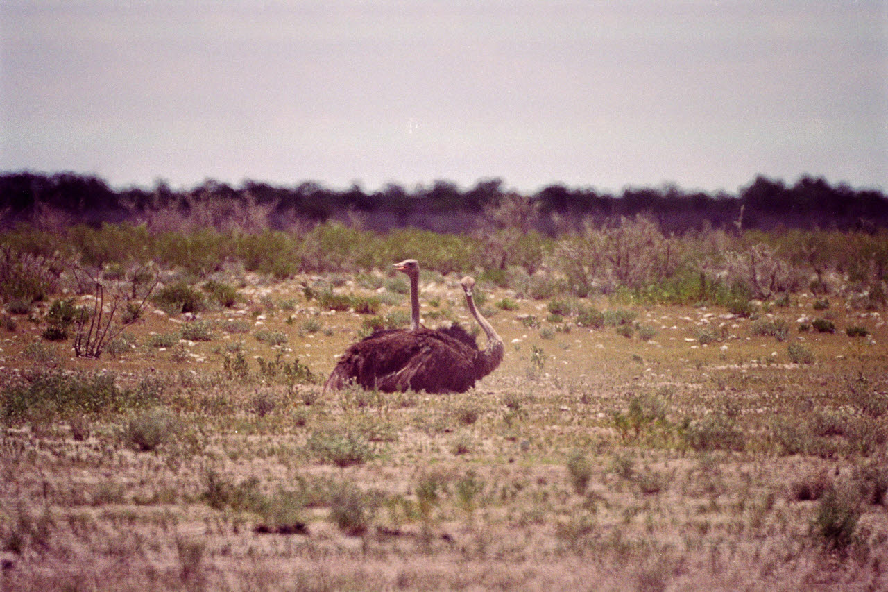 The Ostrich is a giant flightless birds with a very long bare neck and legs. Male Ostrich are black with white wings and tail feathers. Females are brown with dirty white wings and tail feathers. The Ostrich is the largest and heaviest living bird, and the only one with just two toes.