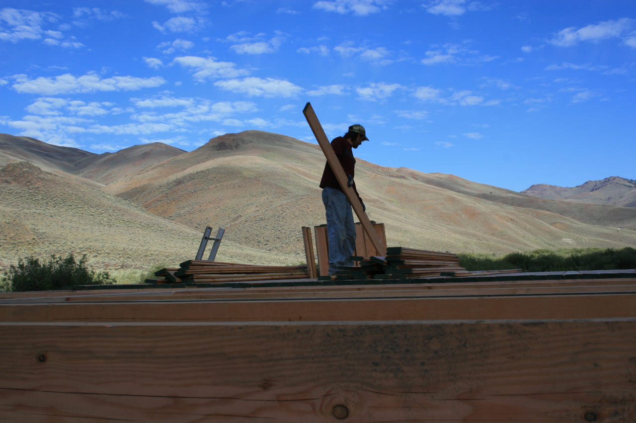 View: MedRes / HiRes | Hauling tongue and groove flooring up to the loft