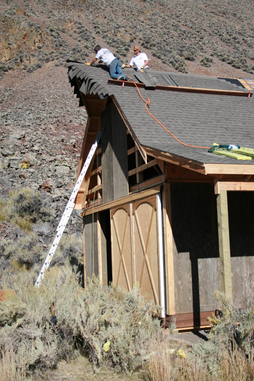 View: MedRes / HiRes | Installing and staining the last bits of siding