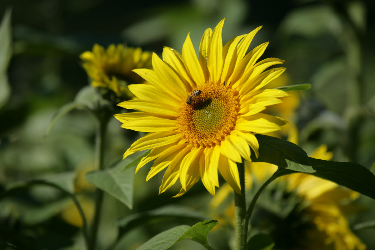 View: MedRes / HiRes | Sunflower hopping bee