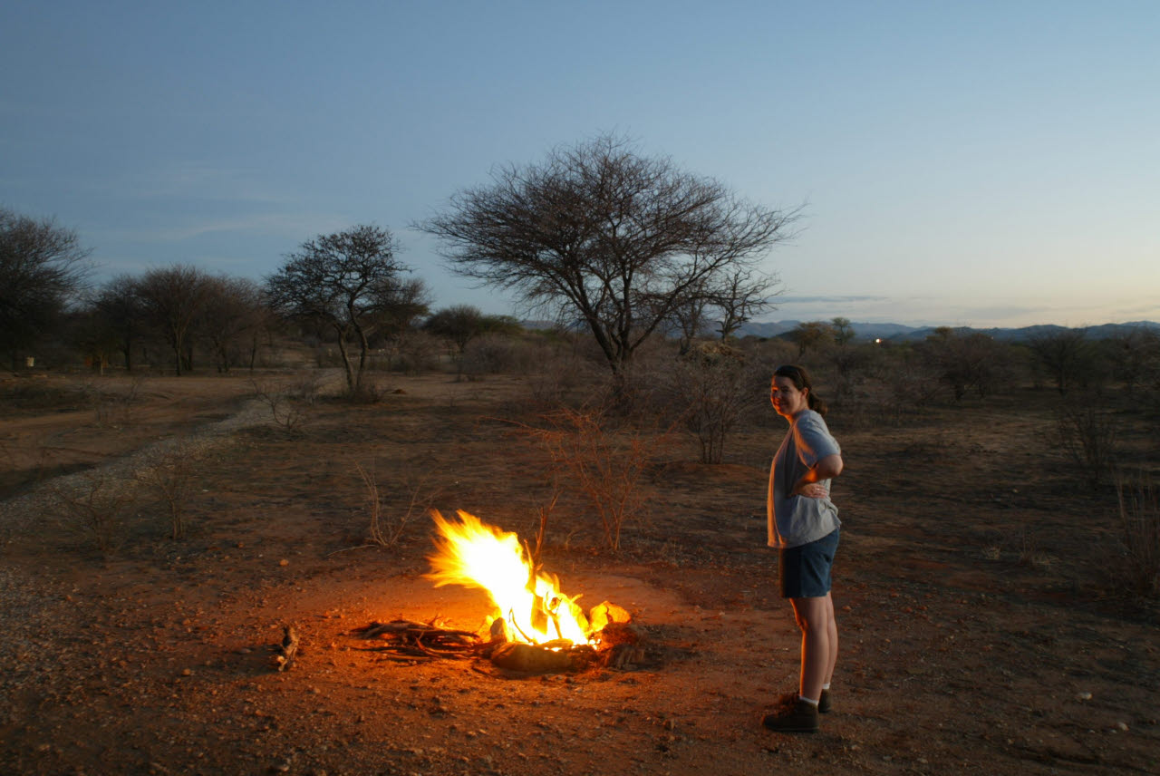 Categories: Camera.Canon EOS-1D File Formats.JPG Location.Africa.Namibia.Windhoek Region.Okapuka Ranch.Dune Camp Photographer.Mark Tomsheck (Photographer) Publish Subject.Activities.Camping Subject.Other.Fire Subject.People.Friends.Bentley.Lisa Bentley Trip.2003._2003_11_Namibia