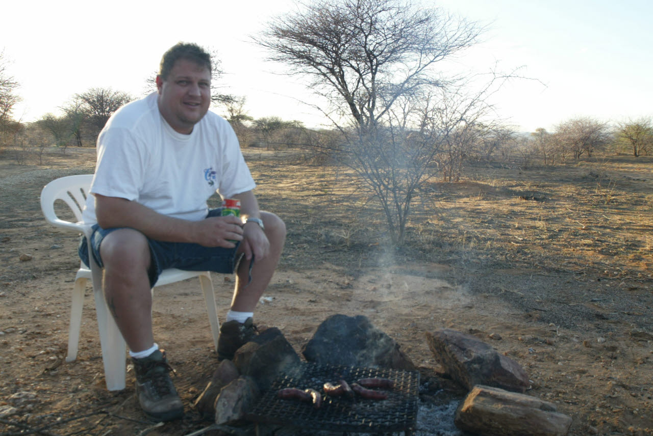 Categories: Camera.Canon EOS-1D File Formats.JPG Location.Africa.Namibia.Windhoek Region.Okapuka Ranch.Dune Camp Photographer.Mark Tomsheck (Photographer) Publish Subject.Activities.Camping Subject.Other.Fire Subject.People.Friends.Ripple.Bill Ripple Trip.2003._2003_11_Namibia
