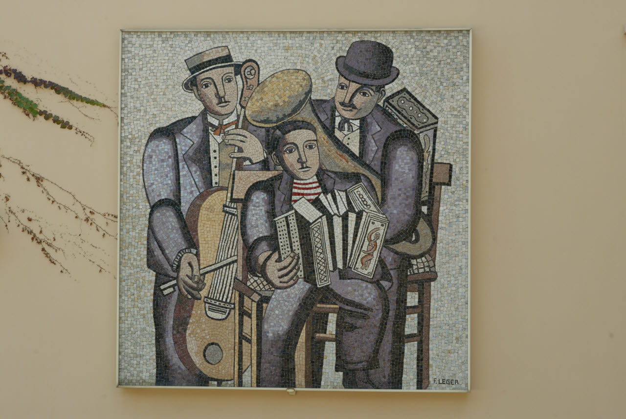 View: MedRes / HiRes | Outdoor Mosaic of Jazz Musicians Outside of Monoco Automobile Museum
