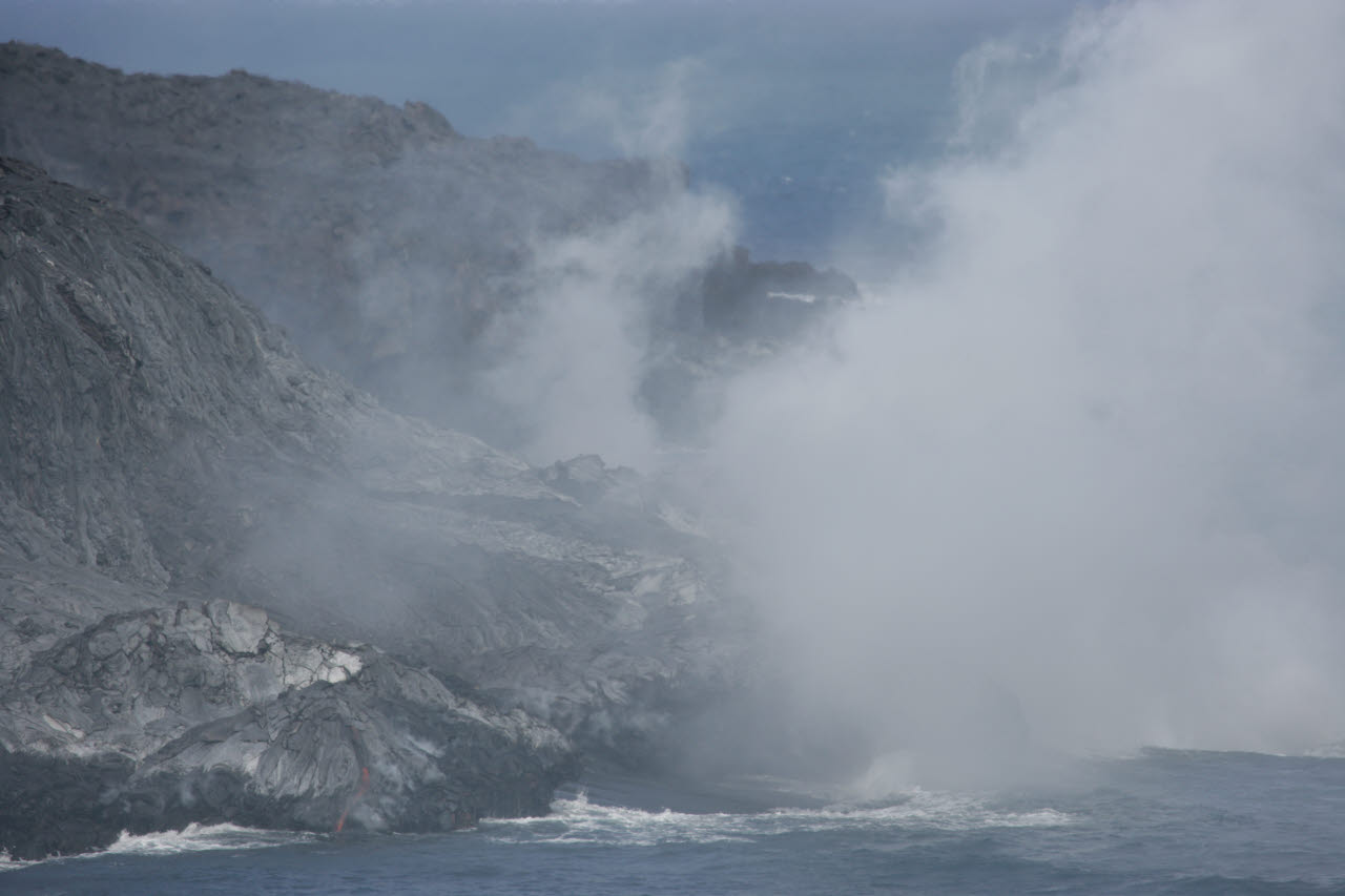 View: MedRes / HiRes | Hot Lava Enters the Ocean Look in bottom left of image for red hot lava.