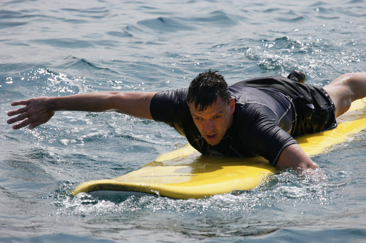 View: MedRes / HiRes | K.C. Paddling on a Surf Board