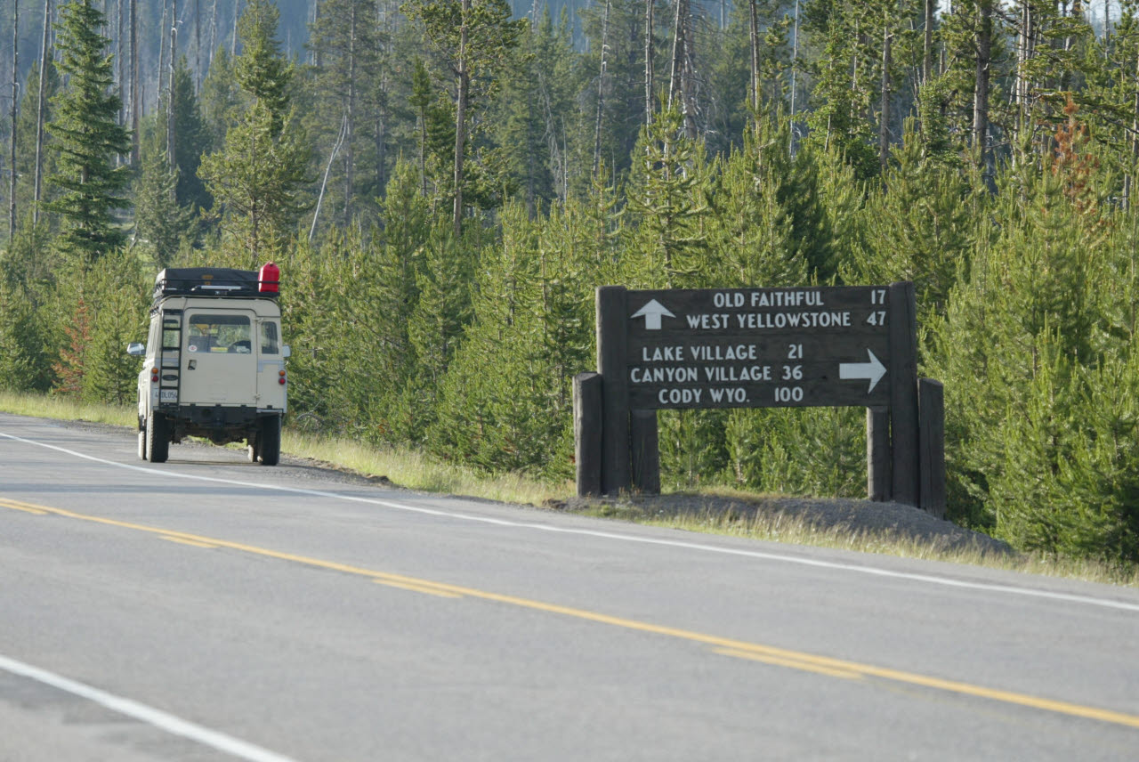 Categories: Camera.Canon EOS-1D File Formats.JPG Location.North America.United States.Wyoming.Yellowstone National Park Photographer.Mark Tomsheck (Photographer) Publish Subject.Places of Interest.National Park Subject.Signs Subject.Transportation.Automobile.Land Rover.Series III Trip.2004._2004_06_LRAdventure