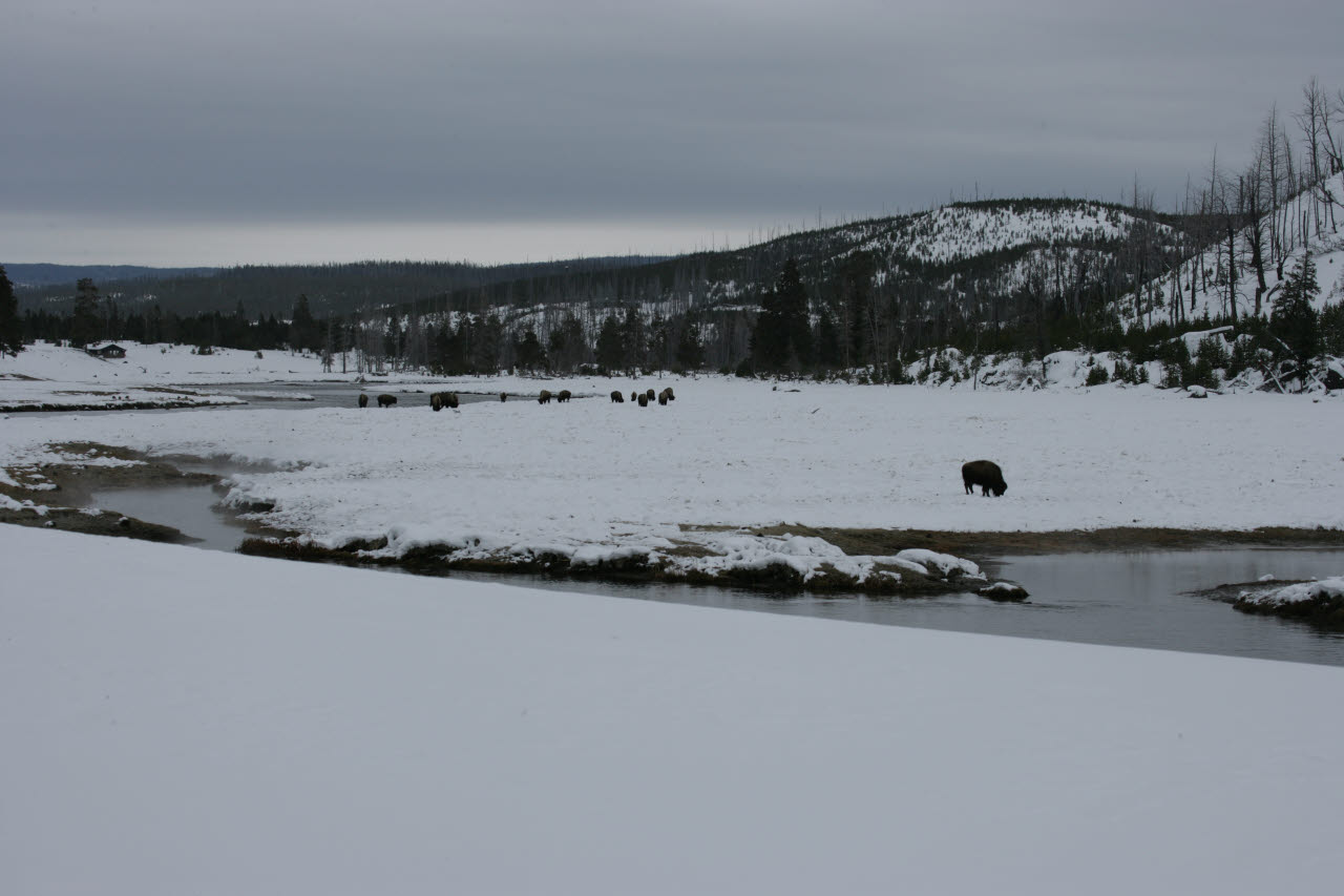 View: MedRes / HiRes | Bison grazing near the hot springs