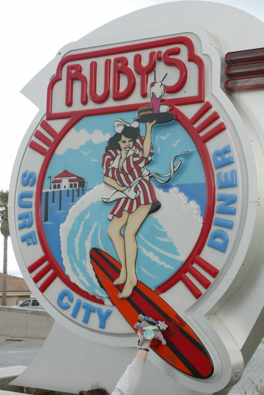 View: MedRes / HiRes | Sue and Anteater at Ruby's Sign in Huntington Beach