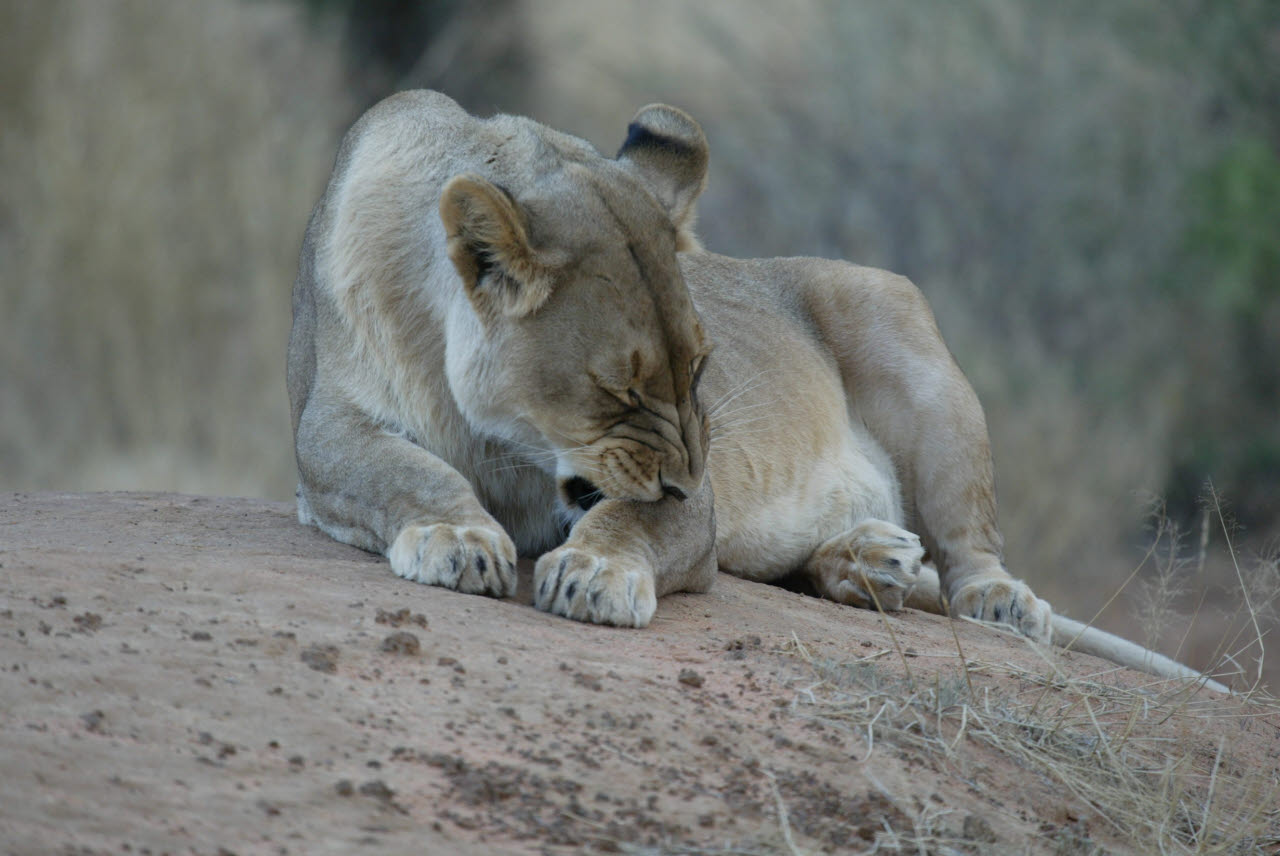 View: MedRes / HiRes | Grooming Lioness at Okonjima