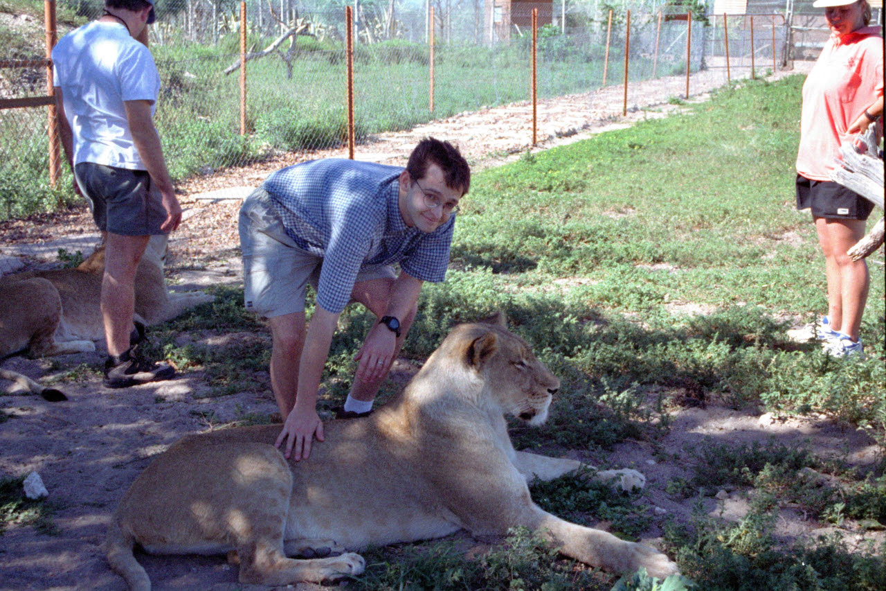 Mark pets a Lioness at Harnas