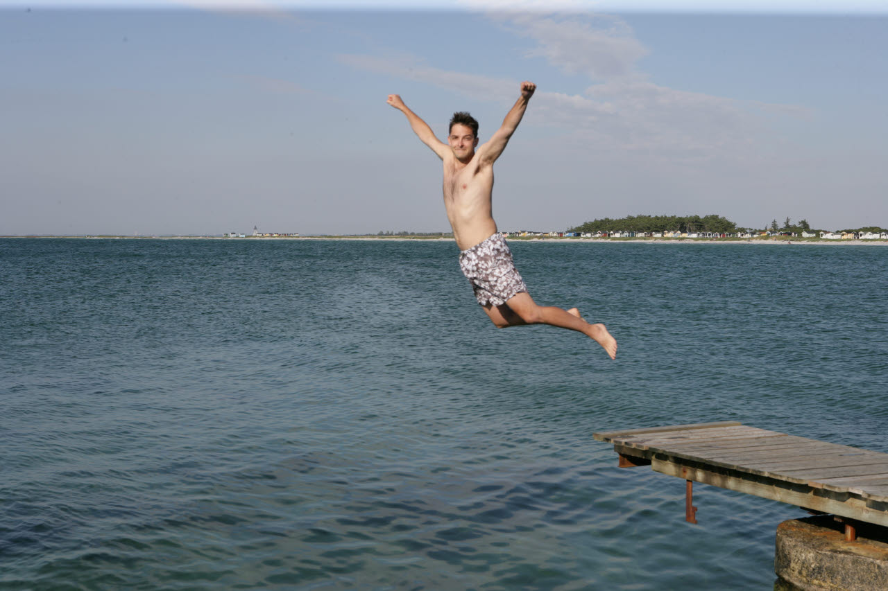 View: MedRes / HiRes | Dave jumps for the swimming hole