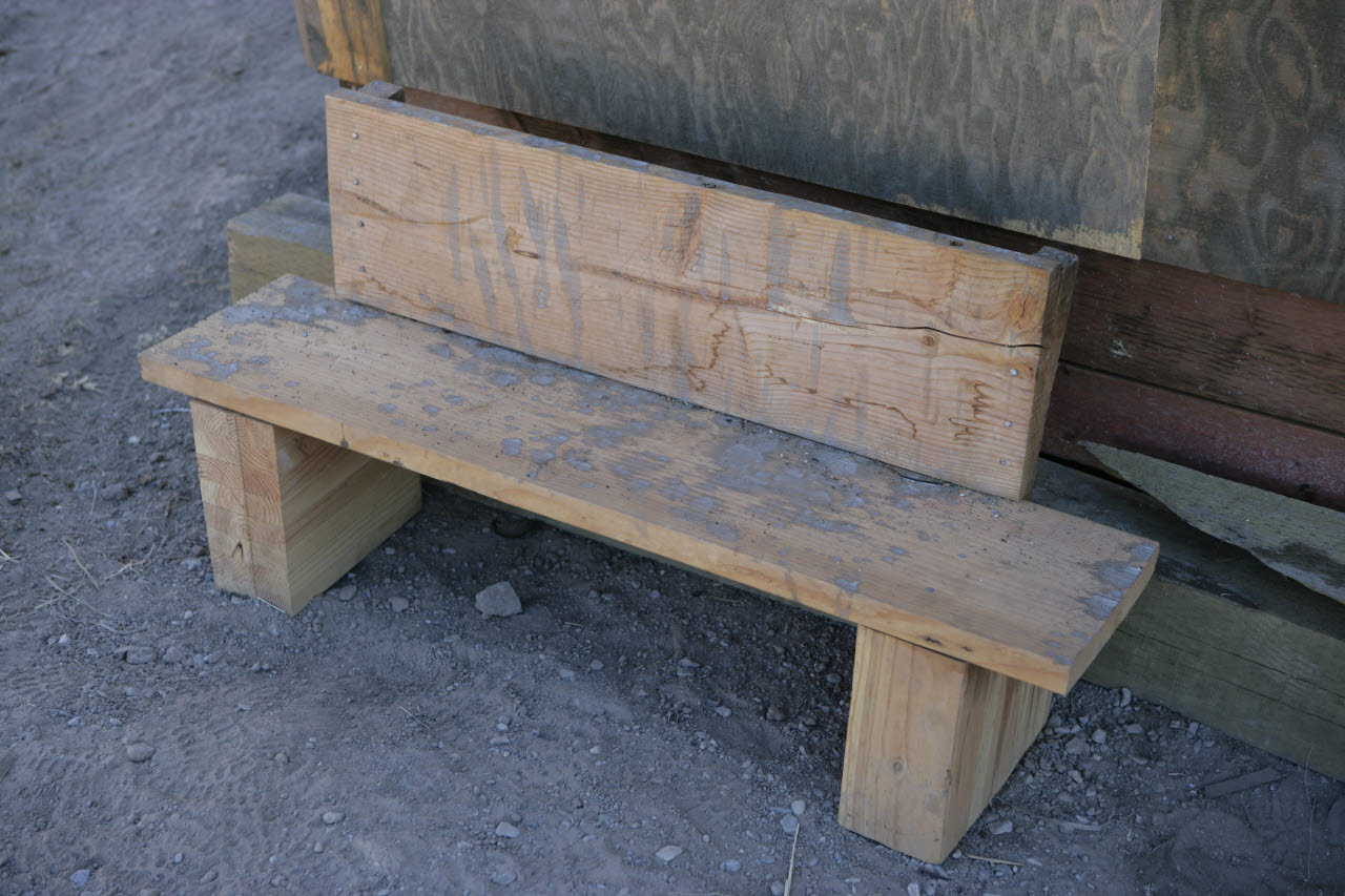 View: MedRes / HiRes | Scrap bench served as tool bench and dining table